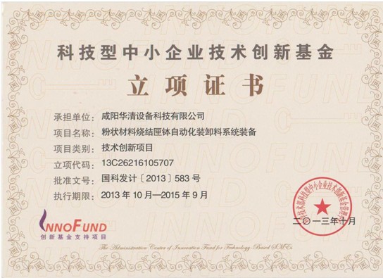 我公司獨立設計與制作的“粉狀材料燒結匣缽自動化裝卸料系統裝備”喜獲2013年度國家科技型中小企業技術創新基金項目立項